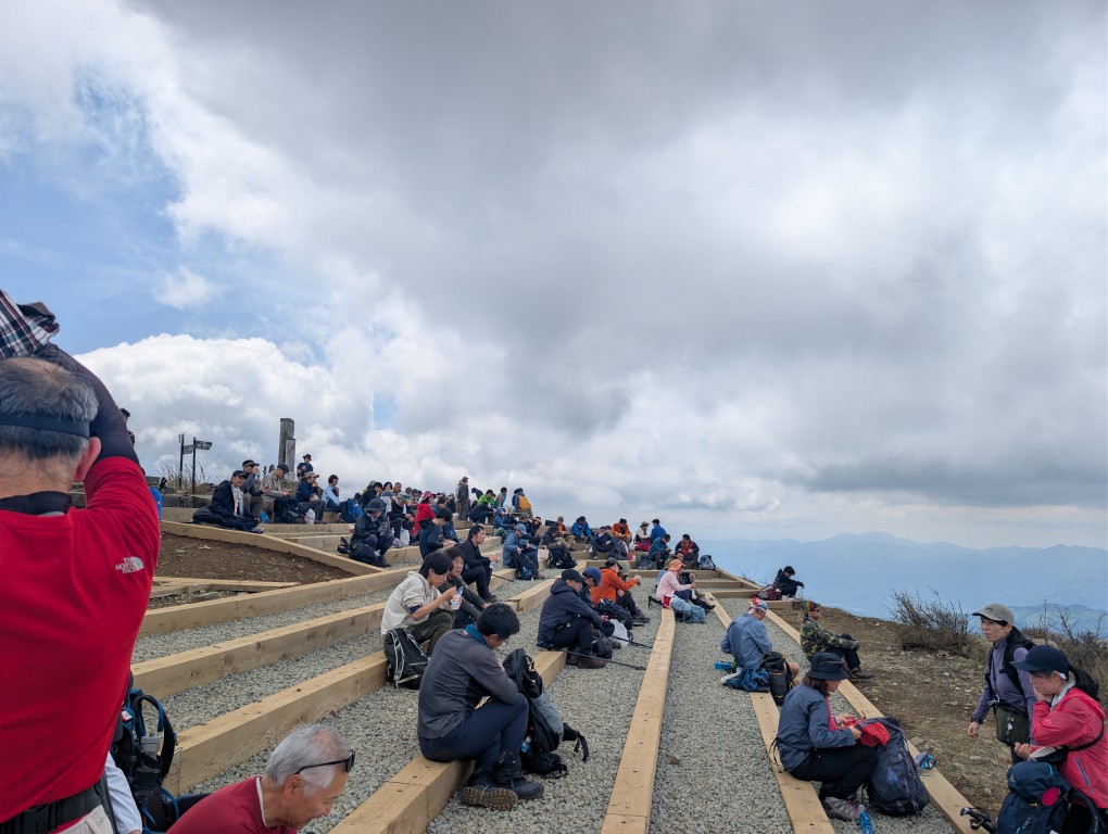 塔ノ岳に近づくにつれて人は増え、山頂は賑わいを見せていた。工事の影響もあり、どこか落ち着かない空気が流れている。尊仏山荘でコーヒーを飲み、短時間の休憩。完全に止まるのではなく、流れを切らない程度に回復させる。このバランスが長時間行動では重要になる。